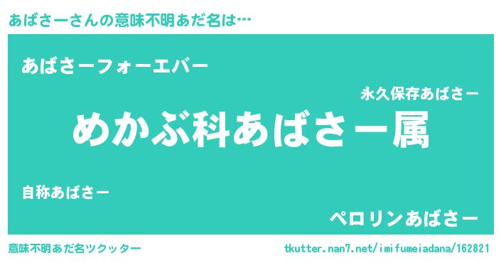 | 男性向けラノベタイトル風あだ名 | 『アバサースレイヤー』『あばさーの憂鬱』 |