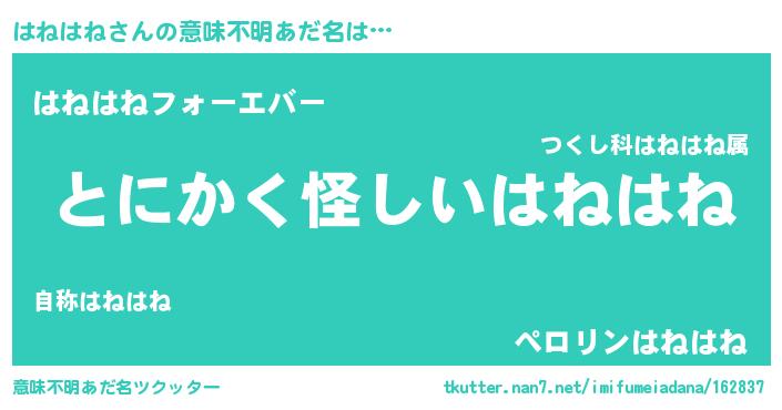 | ポケモン風あだ名 | 『ヒハネハネ』『ハネハダネ』 |