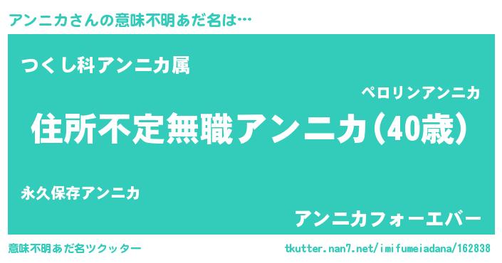 | 男性向けラノベタイトル風あだ名 | 『この素晴らしい世界にアンニカを!』 |