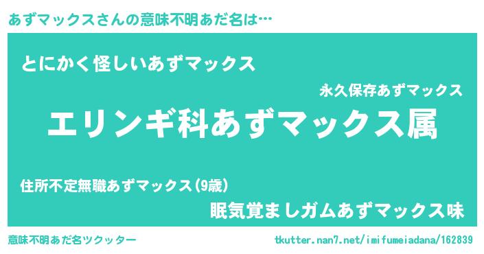 | 欧米人風あだ名 | 『あずマックス・ステッグマイヤー』 |