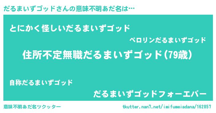 | 男性向けラノベタイトル風あだ名 | 『この素晴らしい世界にだるまいずゴッドを!』 |