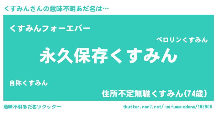 | 胡散臭い通販商品みたいなあだ名 | 『絶対に幸福をもたらす水素水…その名も「くすみん」』 |