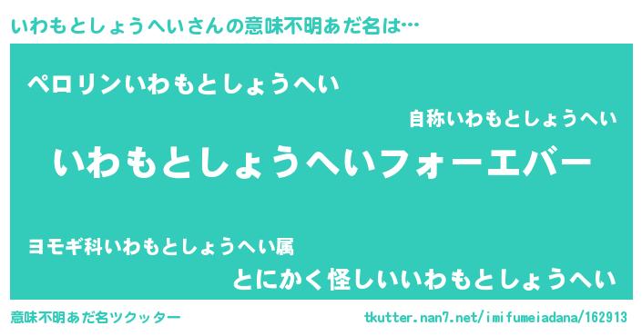 | 男性向けラノベタイトル風あだ名 | 『いわもとしょうへいに滅ぼされるだけの簡単なお仕事です』 |