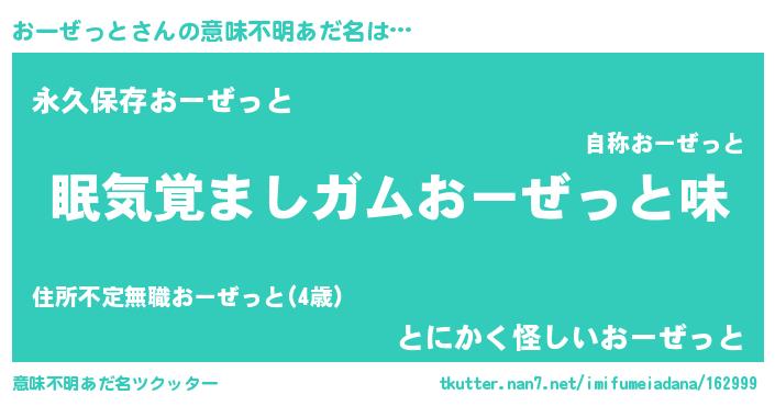 | ヘコむあだ名 | 『おーぜっと(遠い目)』『おーを』 |