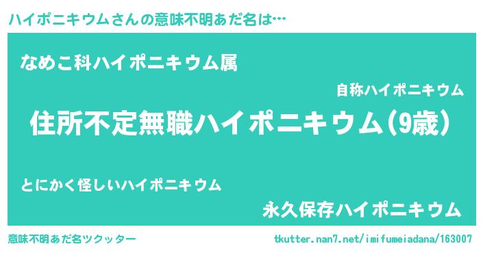 | ヘコむあだ名 | 『ハイポニキウム(笑)』『ハイっ子』 |