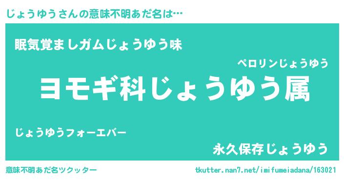 | 男性向けラノベタイトル風あだ名 | 『じょうゆう~年齢イコール彼女いない歴の魔法使い~』 |