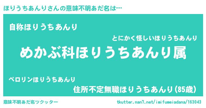 | 欧米人風あだ名 | 『ほりうちあんり・ステッグマイヤー』 |