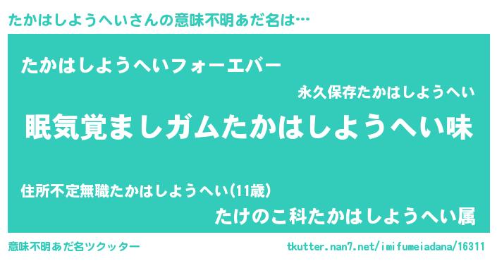 | 胡散臭い通販商品みたいなあだ名 | 『100人中100人が認めたイリジウム磁石…その名も「たかはしようへい」』 |