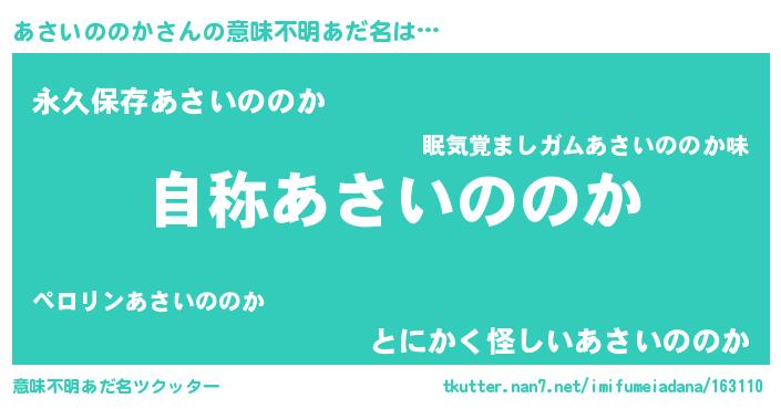 | 女子向けラノベタイトル風あだ名 | 『あさいののかストレイドッグス』 |