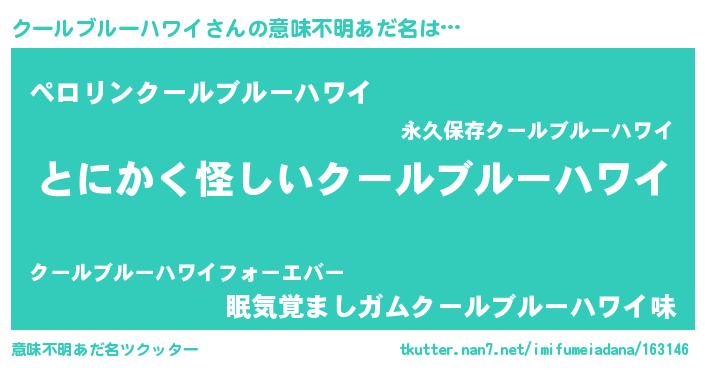 | 男性向けラノベタイトル風あだ名 | 『緋弾のクールブルーハワイ』 |