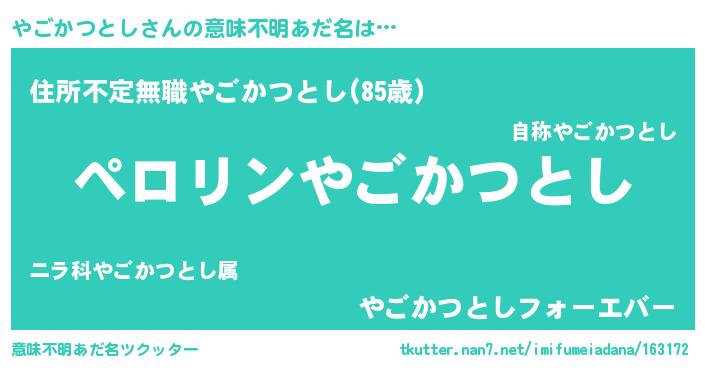 | ヘコむあだ名 | 『やごっふぃ~』『酢こんぶ』 |