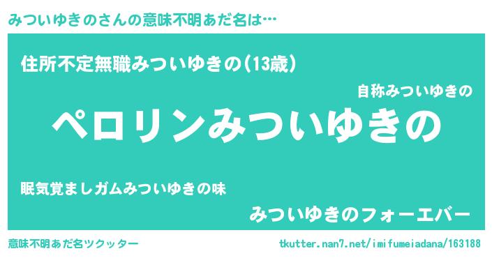 | 女子向けラノベタイトル風あだ名 | 『(仮)みついゆきののやんごとなき事情』 |