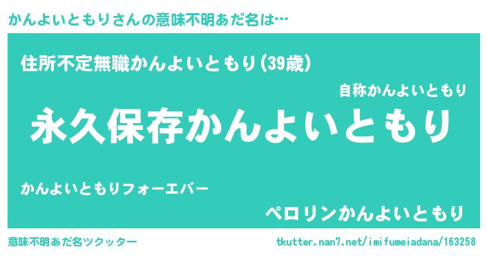 | 胡散臭い通販商品みたいなあだ名 | 『前代未聞の健康食品…その名も「かんよいともり」』 |