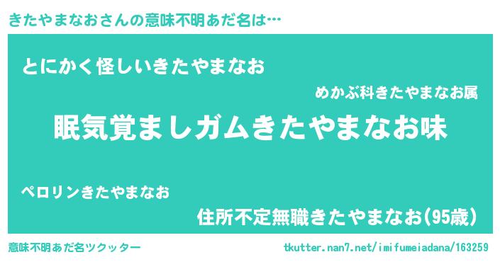| ポケモン風あだ名 | 『キックウザ』『ヒキタヤマナオ』 |