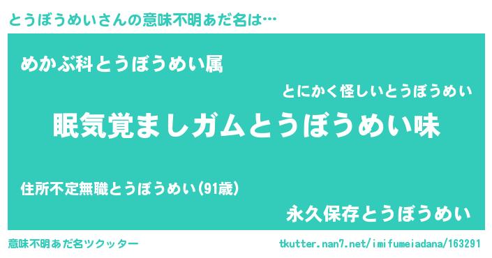 | 欧米人風あだ名 | 『アンジェラ・とうぼうめい』 |