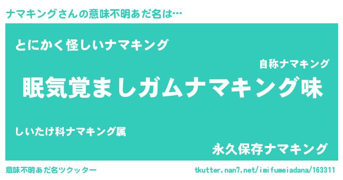 | ヒーロー風カッコイイあだ名 | 『天空の使者ナマキング』『暗黒騎士ナマ』 |