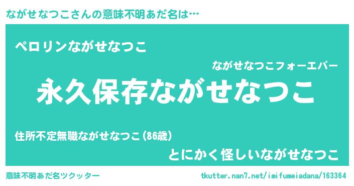 | ヘコむあだ名 | 『ながせなつこ(苦笑)』『ながふぇ~』 |