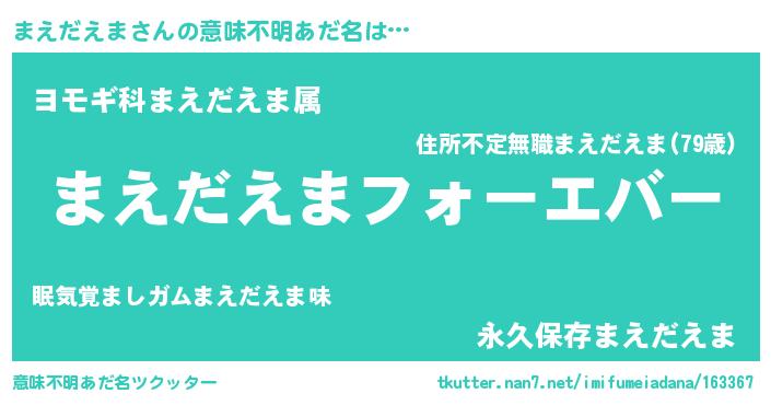 | 肩書あだ名 | 『まえだえま国家主席』『まえだえま中尉』 |