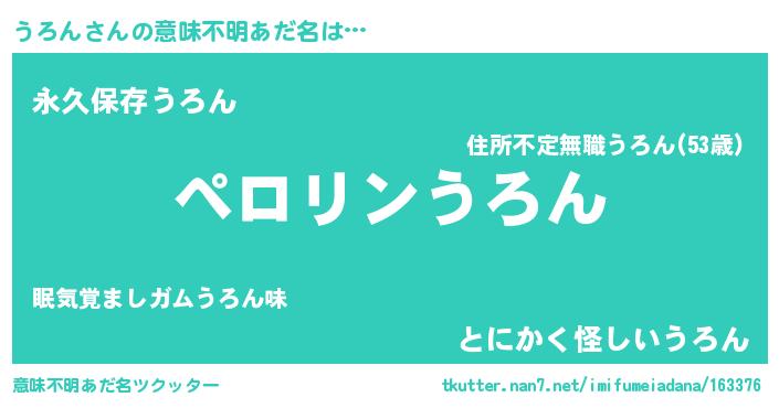 | ヘコむあだ名 | 『うろにー』『うろん(笑)』『つくし』 |
