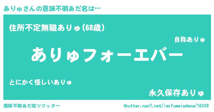 | 男性向けラノベタイトル風あだ名 | 『やはりありゅの青春ラブコメはまちがっている 』 |
