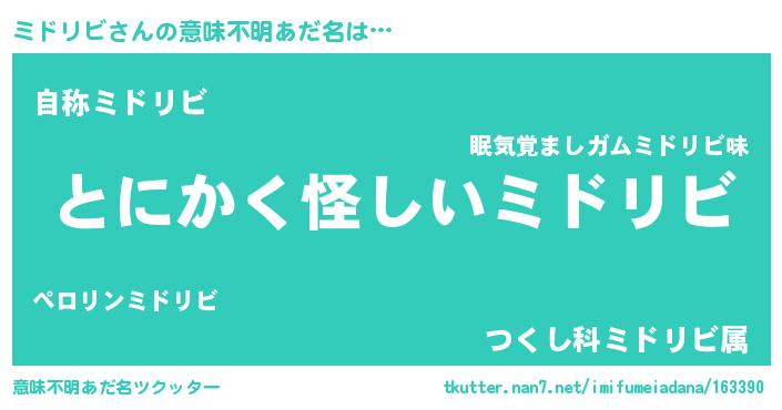 | ヒーロー風カッコイイあだ名 | 『黄金騎士ミド』『究極戦士ミドリビ』 |