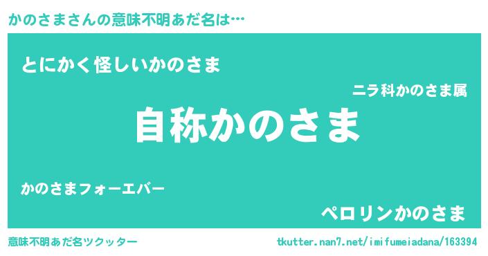 | 男性向けラノベタイトル風あだ名 | 『Re:かのさまから始める異世界生活』 |