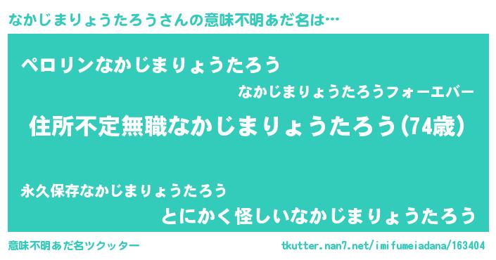 | 男性向けラノベタイトル風あだ名 | 『魔弾の王となかじまりょうたろう』 |