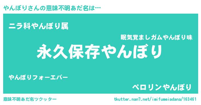 | 胡散臭い通販商品みたいなあだ名 | 『来世でも幸せになれる水素水…その名も「やんぼり」』 |