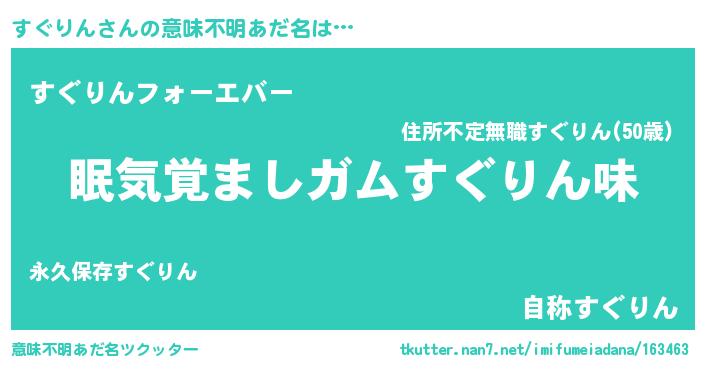 | ヘコむあだ名 | 『酢こんぶ』『すぐりん(震え声)』 |