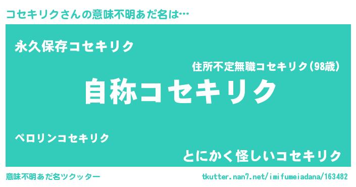 | 男性向けラノベタイトル風あだ名 | 『Re:コセキリクから始める異世界生活』 |
