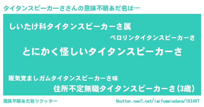 | 女子向けラノベタイトル風あだ名 | 『タイタンスピーカーさの卵を拾いまして』 |