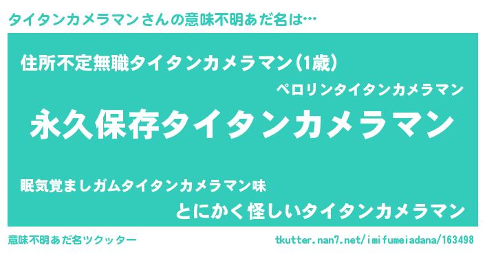 | 胡散臭い通販商品みたいなあだ名 | 『来世でも幸せになれる健康食品…その名も「タイタンカメラマン」』 |