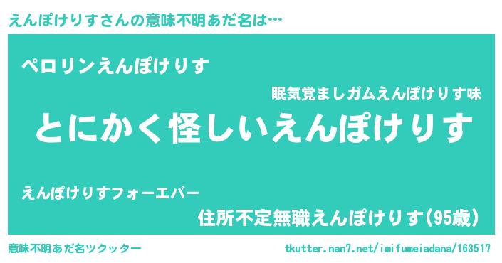 | ポケモン風あだ名 | 『ヒエンポケリス』『エンチュウ』 |