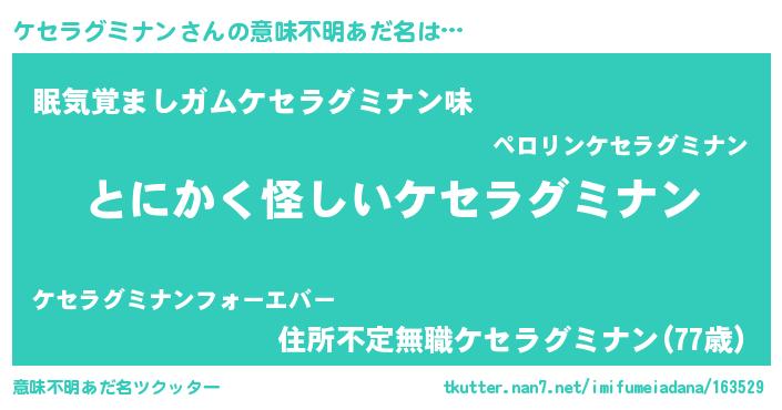 | ポケモン風あだ名 | 『ケセゴンZ』『ヒケセラグミナン』 |