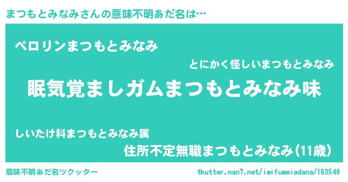 | 胡散臭い通販商品みたいなあだ名 | 『お金では代えられないイリジウム磁石…その名も「まつもとみなみ」』 |