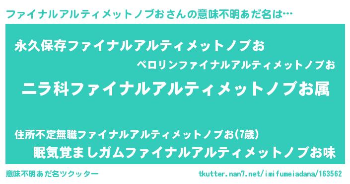| ヘコむあだ名 | 『ファイナルアルティメットノブお(遠い目)』 |