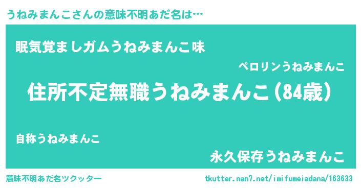 | 男性向けラノベタイトル風あだ名 | 『この素晴らしい世界にうねみまんこを!』 |