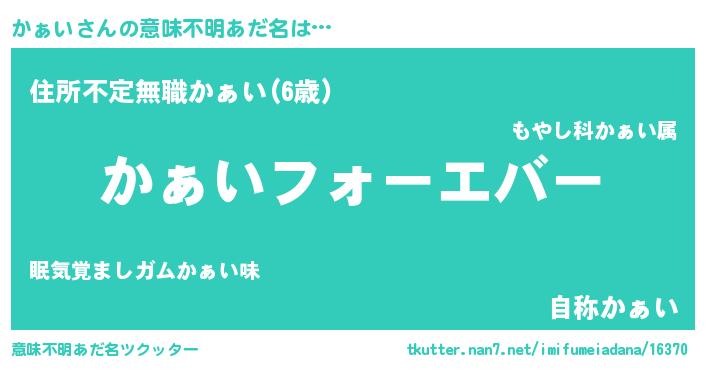 | ヒーロー風カッコイイあだ名 | 『ウルトラかぁいマン』『仮面カァダー』 |