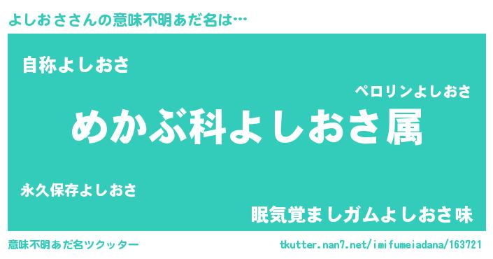 | 男性向けラノベタイトル風あだ名 | 『ヨシオサスレイヤー』 |