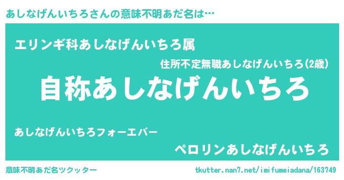 | 女子向けラノベタイトル風あだ名 | 『あしなげんいちろアンティーク』 |