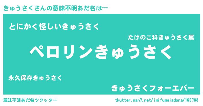 | ヒーロー風カッコイイあだ名 | 『スーパーキュウサク』『幻影騎士キュ』 |