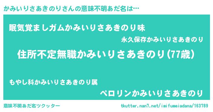 | 料理風あだ名 | 『かみいりさあきのりのカルパッチョ風』 |