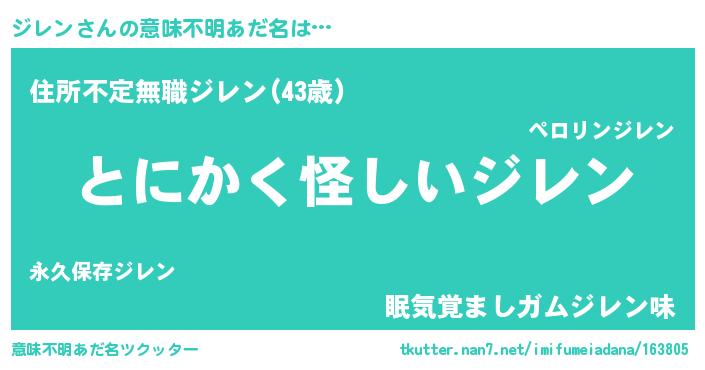 | 欧米人風あだ名 | 『ウサインジレン』『ダレノガレジレン』 |