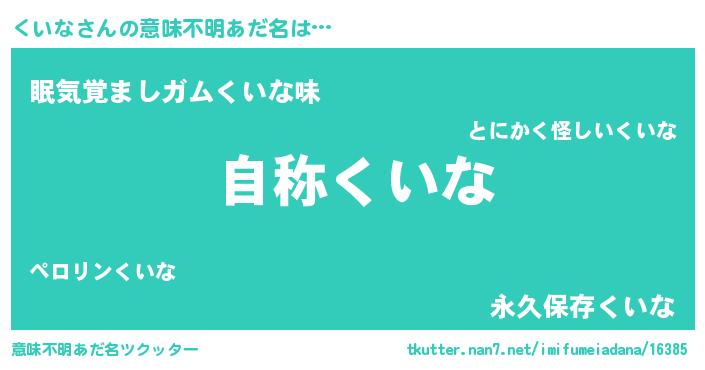 | ヒーロー風カッコイイあだ名 | 『超時空戦士クイナ』『慈愛の使者くいな』 |