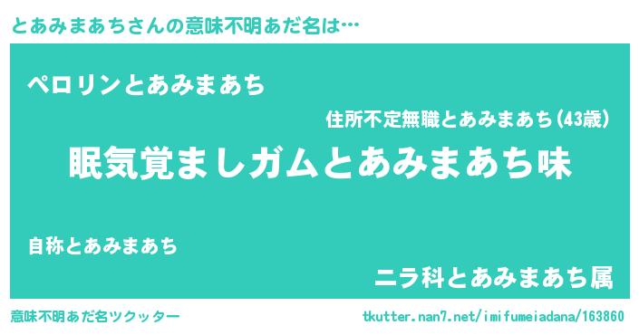 | ヘコむあだ名 | 『とあにゅー』『牛乳』『とあっ子』 |