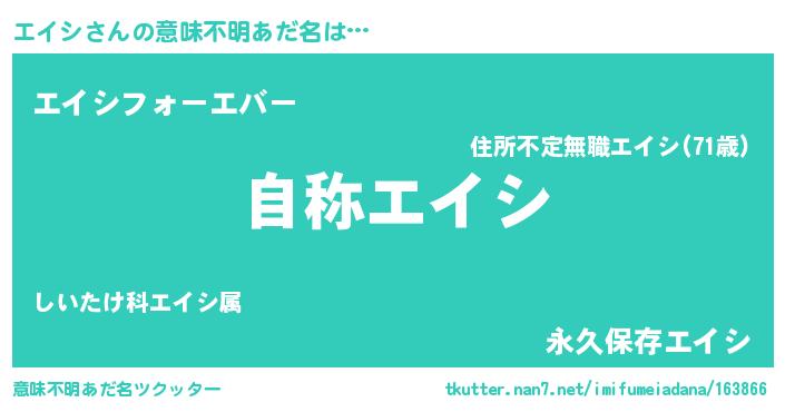 | ヒーロー風カッコイイあだ名 | 『最強戦士エイシ』『ウルトラエイシマン』 |