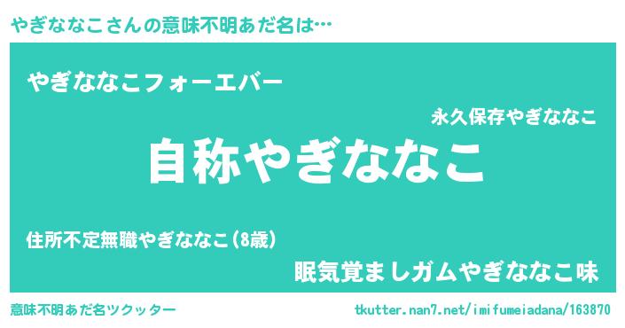 | 男性向けラノベタイトル風あだ名 | 『Re:やぎななこから始める異世界生活』 |