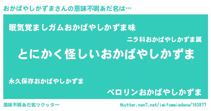 | 女子向けラノベタイトル風あだ名 | 『おかばやしかずまは平凡を望む』 |