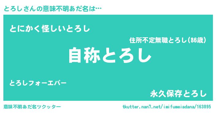 | 欧米人風あだ名 | 『ケンブリッジとろし』『ウサインとろし』 |