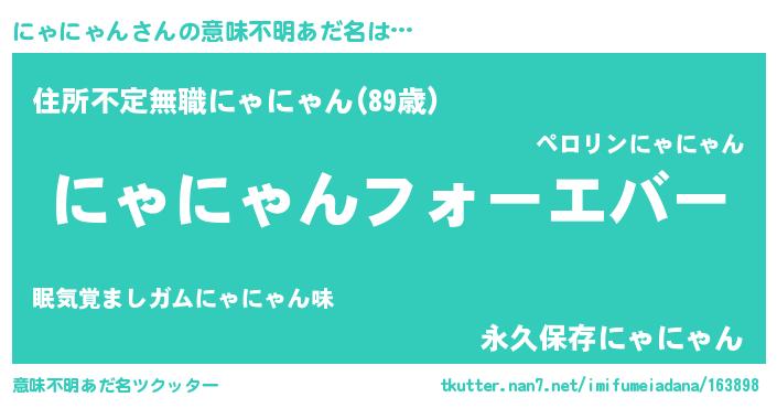 | ファンタジー風あだ名 | 『エターナルニャニャンー』『ニャフェル』 |